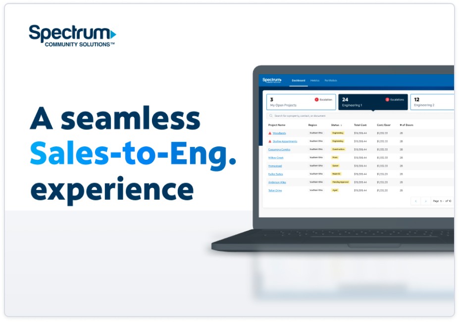 As a New UX Designer at Spectrum, I played a pivotal role in this project. I was entrusted with driving the project and taking ownership of the design. Collaborating closely with me was the Subject Matter Expert (SME) from Community Solutions, who brought extensive experience as a Manager of Strategic Operations, and former manager of the Sales Reps. and Engineers who are the end-users for this application. I also collaborated with User Researchers to plan and conduct focus groups and moderated usability testing. Our team was comprised of a Scrum Master, Software Engineers, a QA Analyst, and myself. After our initial design was completed, we lost our Scrum Master for a period of two weeks, during which I stepped in to fullfill some of these responsibilities. I communicated with engineers, wrote engineering tasks, and led team meetings.