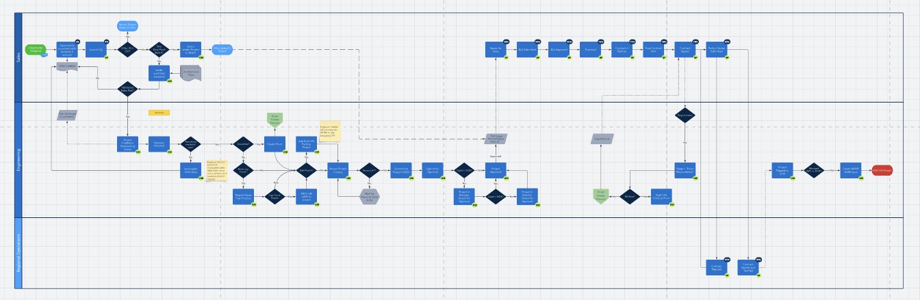 In Phase 0.4, we developed a one-page app to simplify the process of submitting sales opportunities to the system. Previously, salespeople manually input information into Salesforce, causing significant time wastage. Our solution reduced the average time required for this task from 15-20 minutes to just 10 seconds. In Phase 1, we created a web application for submitting opportunity details via an Intake form. These entries enter a queue, where managers assign projects to engineers. The engineer then reviews the submission and adds relevant hardware information. After the engineering process is complete, most projects are auto-approved by the system, while some high-dollar projects require manual approval from leadership.