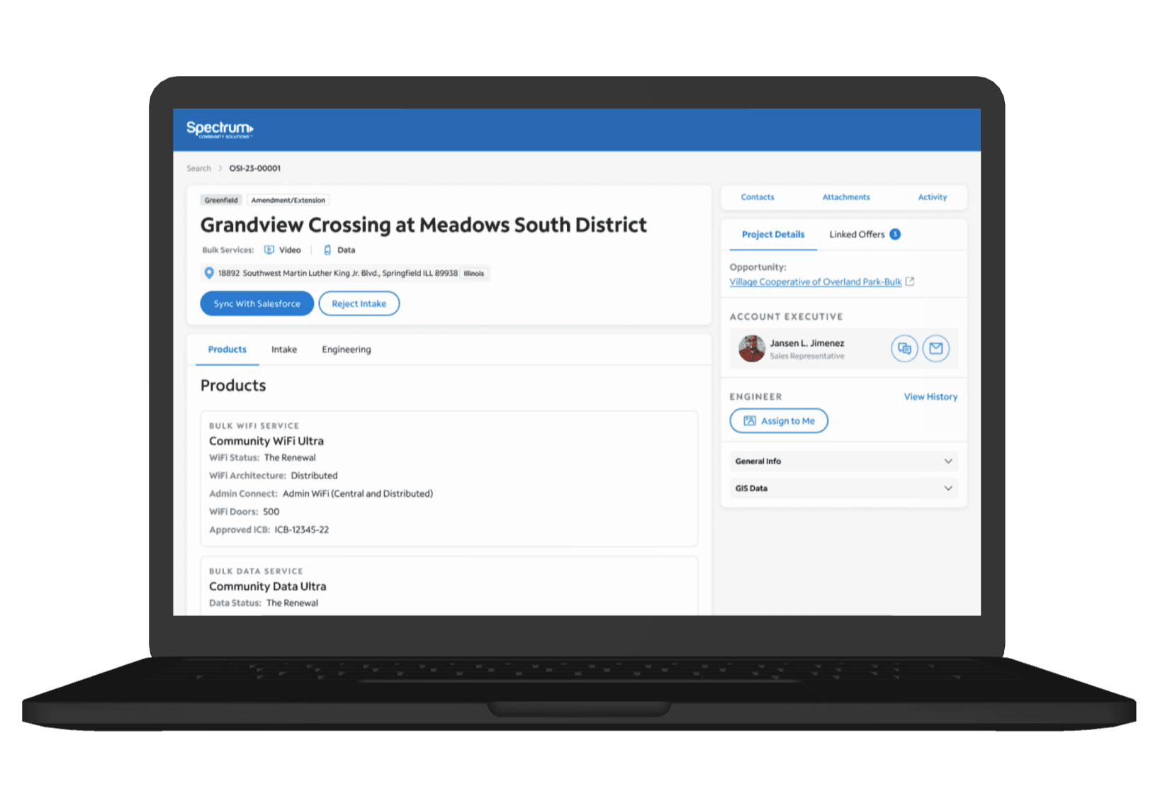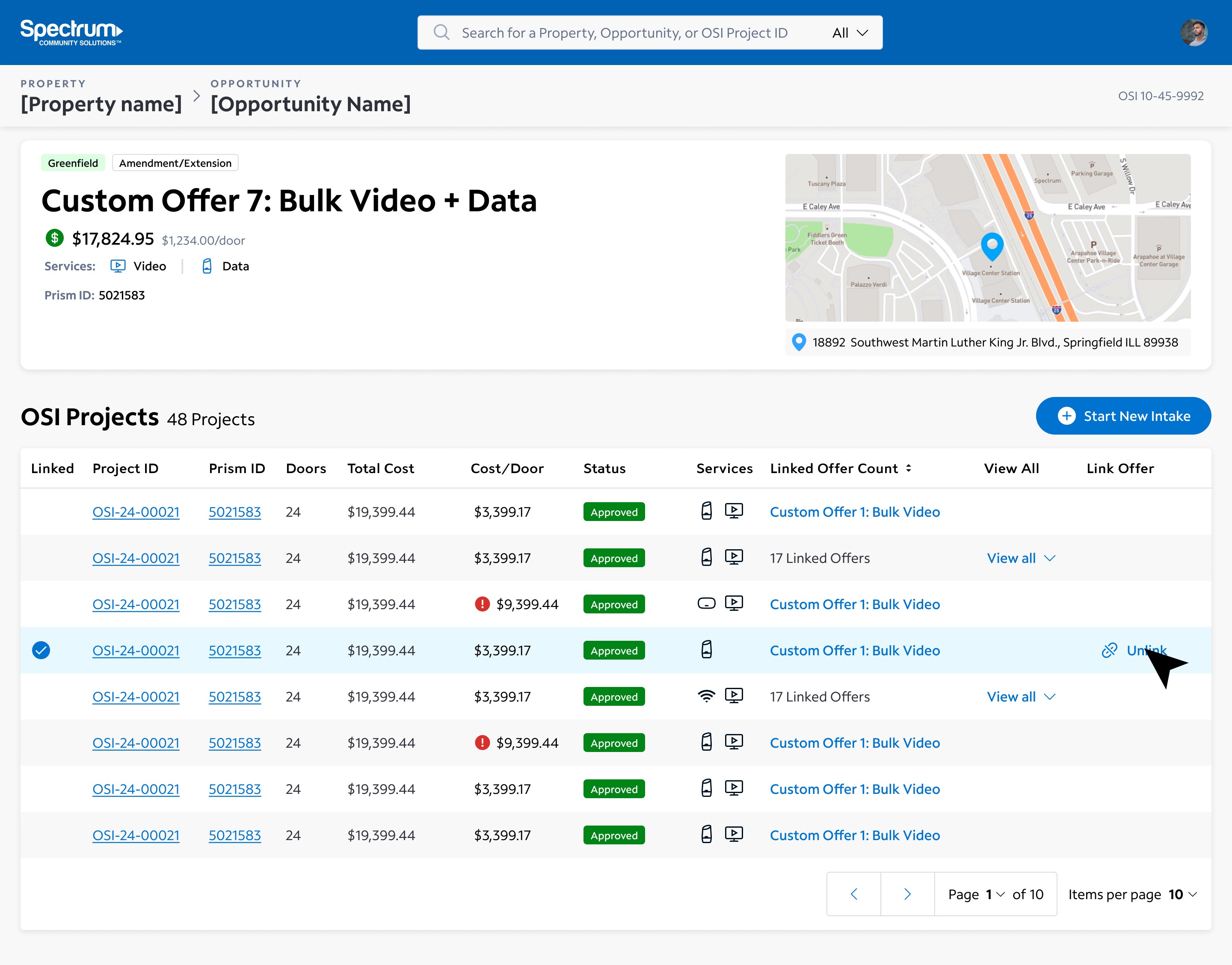 Prior to building this page, a Sales rep would land directly on an intake form when navigation from Salesforce to OSI. This new page allows users to see an overview of the offer,, link it to an existing Project, and start a new Intake.