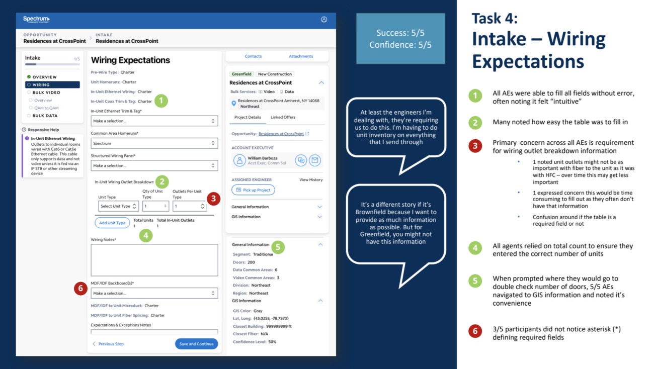 Our Subject Matter Expert (SME), a seasoned Manager of Strategic Operations at Spectrum, flew in from out of state. With firsthand experience managing Community Solutions teams, the SME provided valuable insights into personas, use cases, pain points, and business goals.