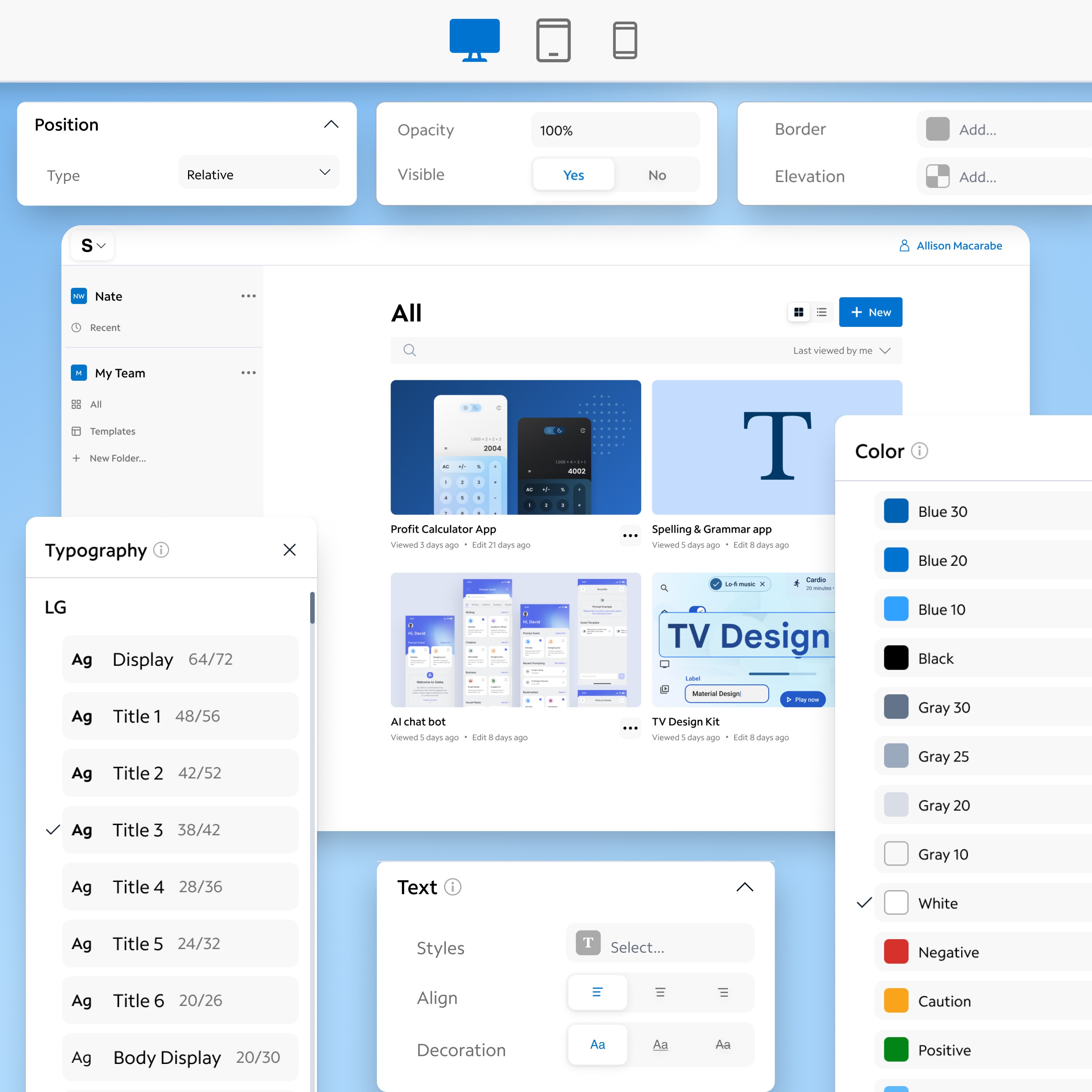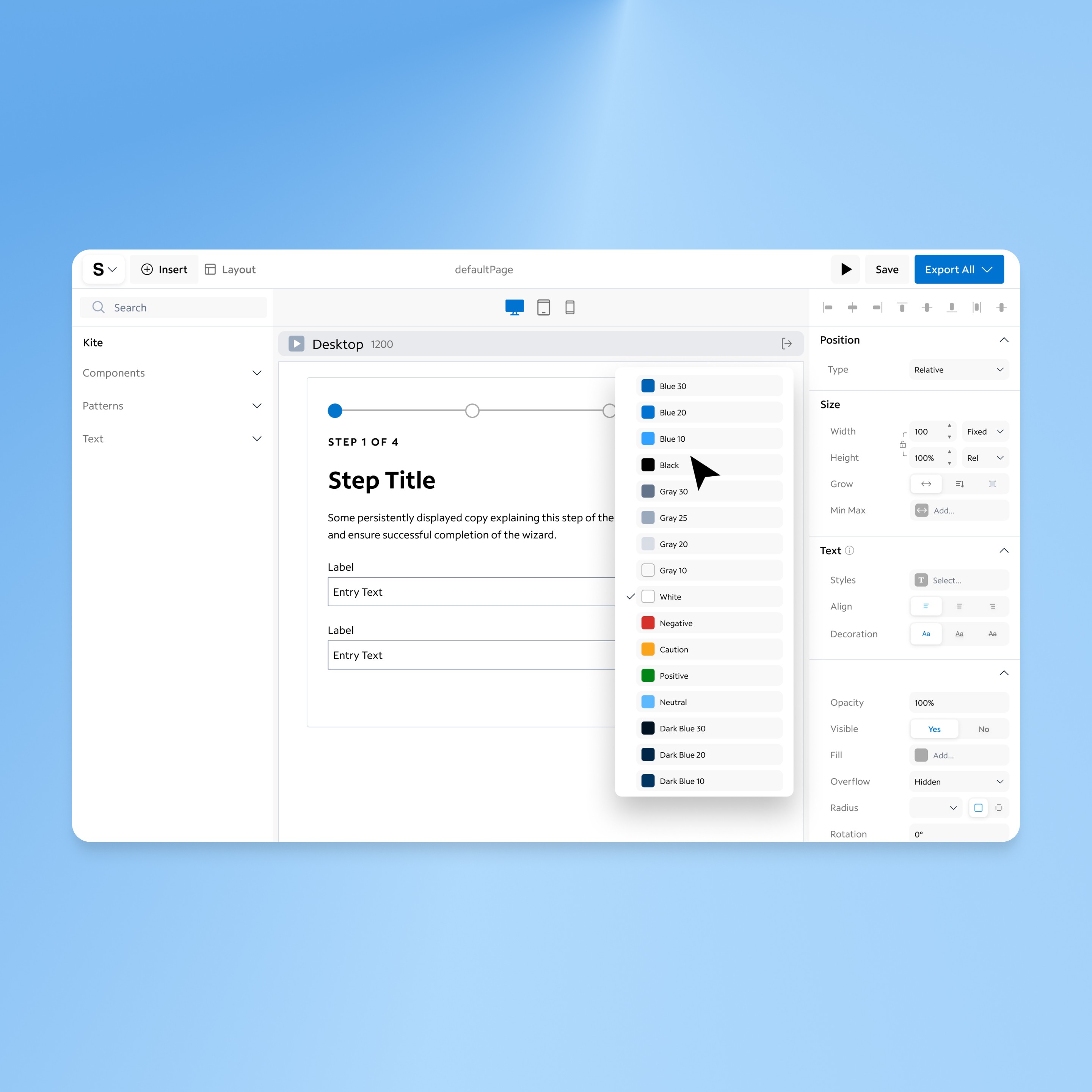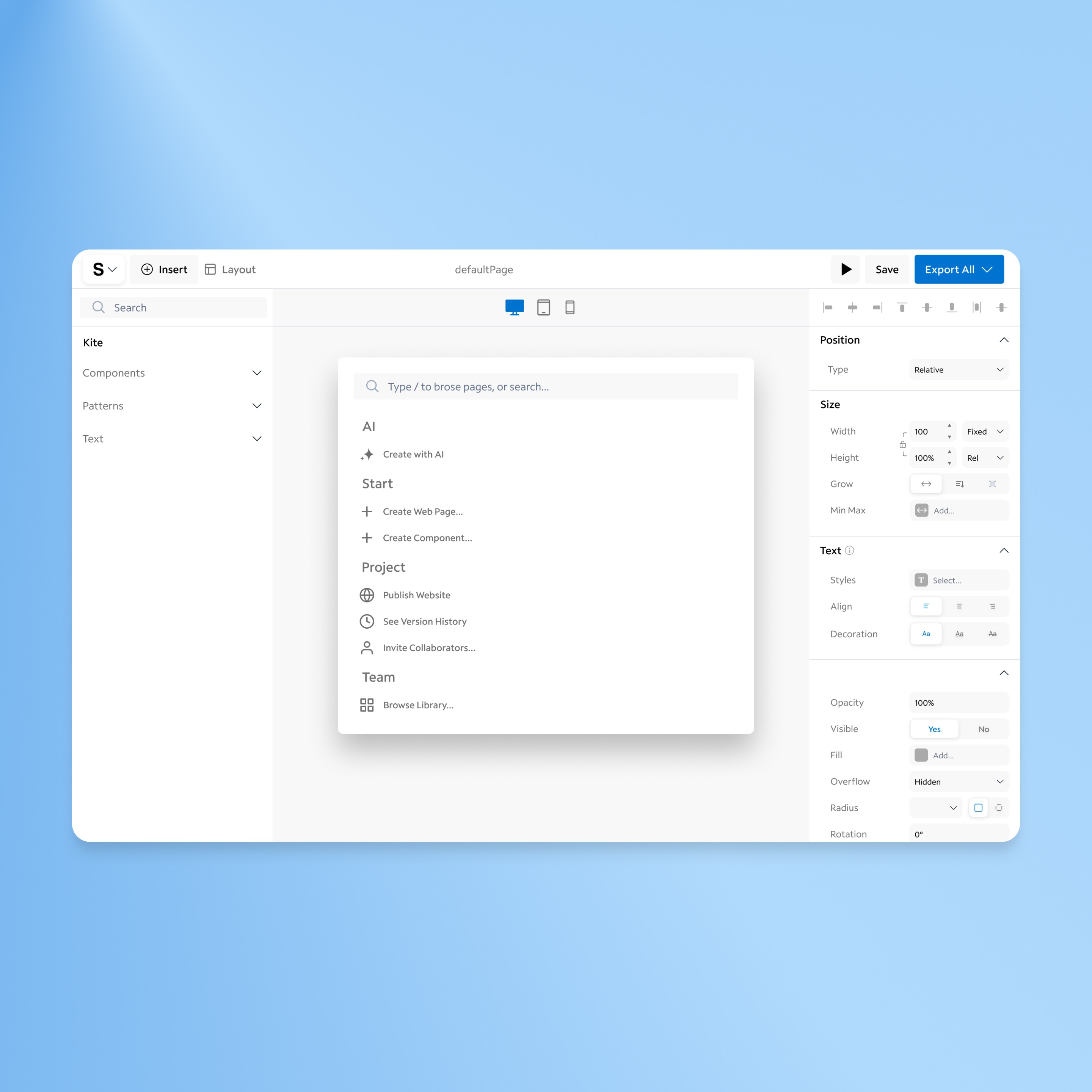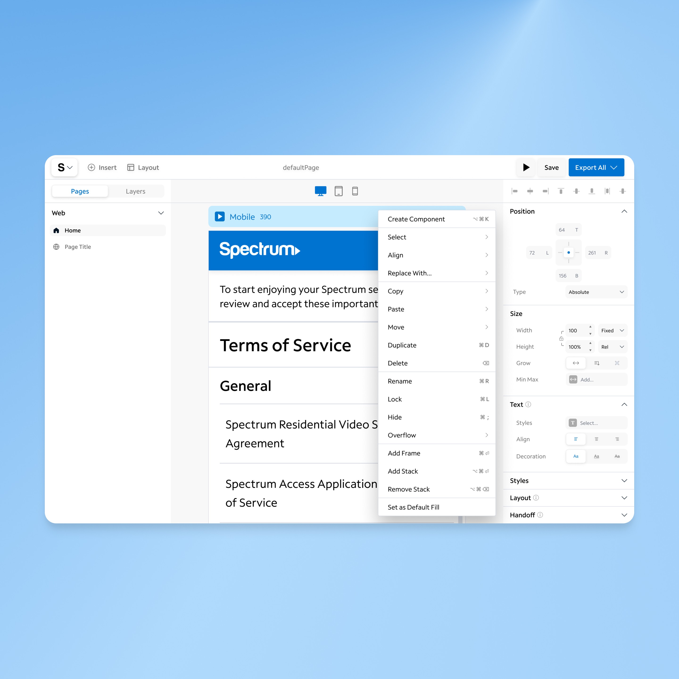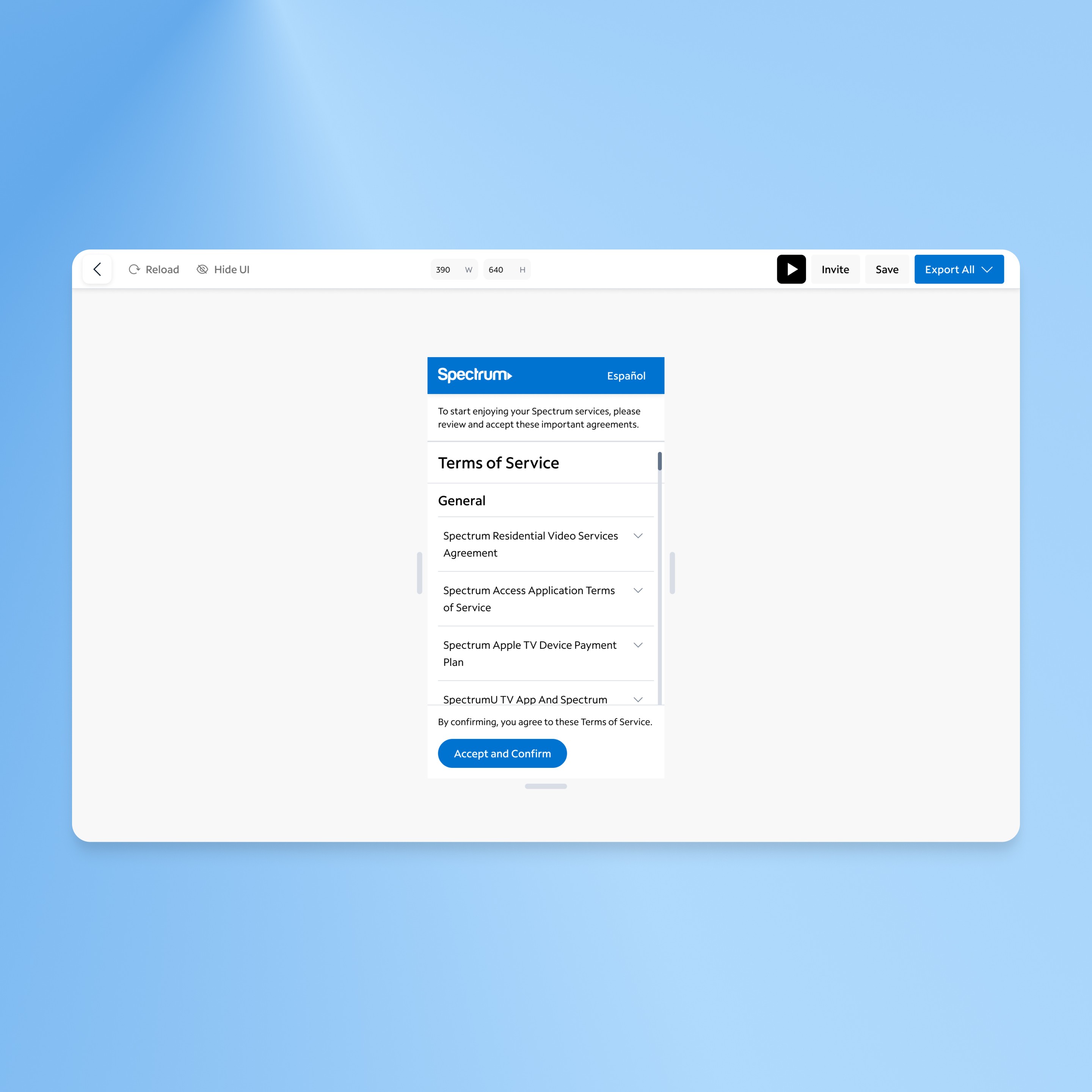 Led design for Spectrum Studio Designer, a no-code tool enabling stakeholders to build web apps without technical expertise. As the sole designer, I defined the product vision, conducted user research, and created an intuitive interface integrated with Spectrum’s Kite Design System. Key features included drag-and-drop components, responsive previews, and easy code export.