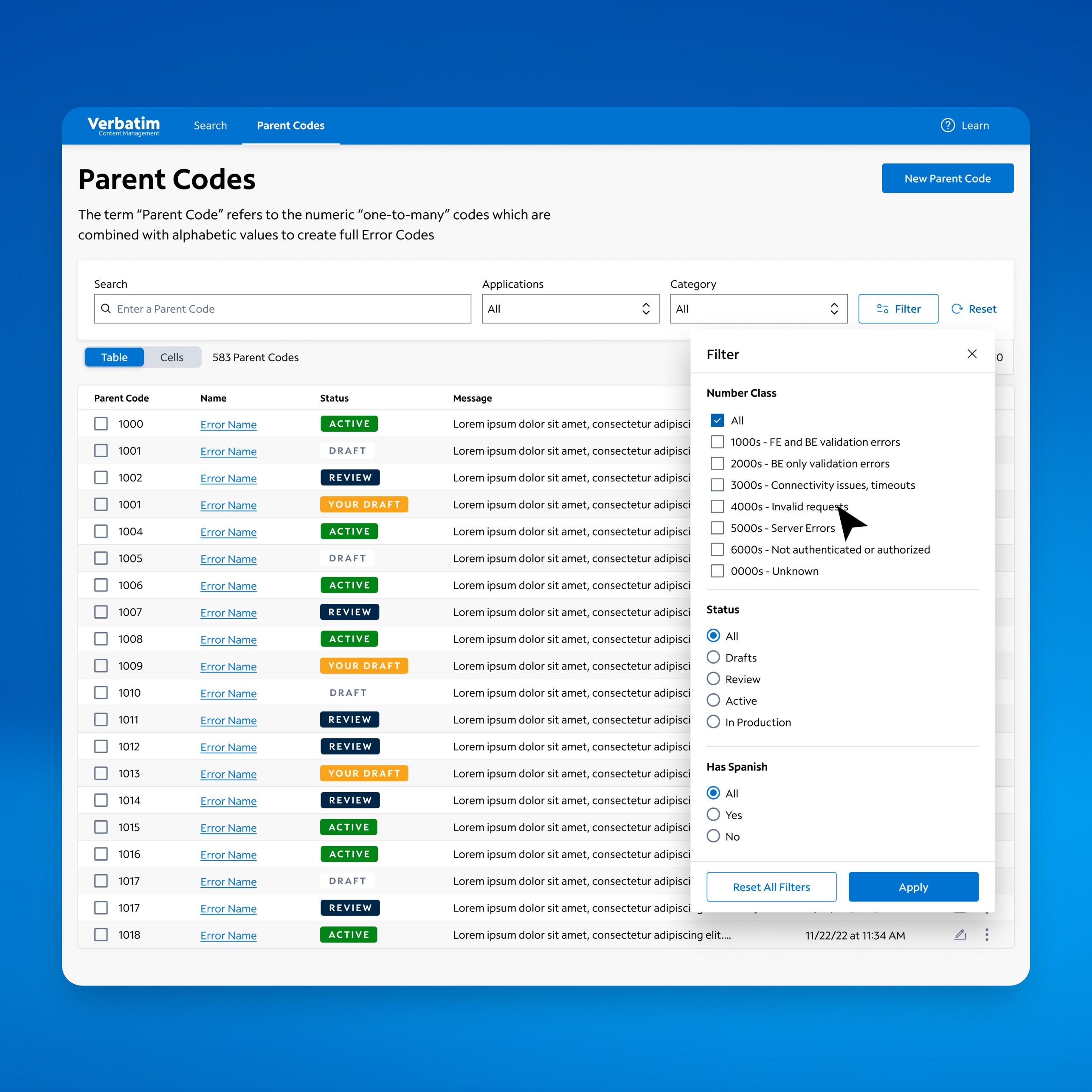 Verbatim - Error Code Management System
