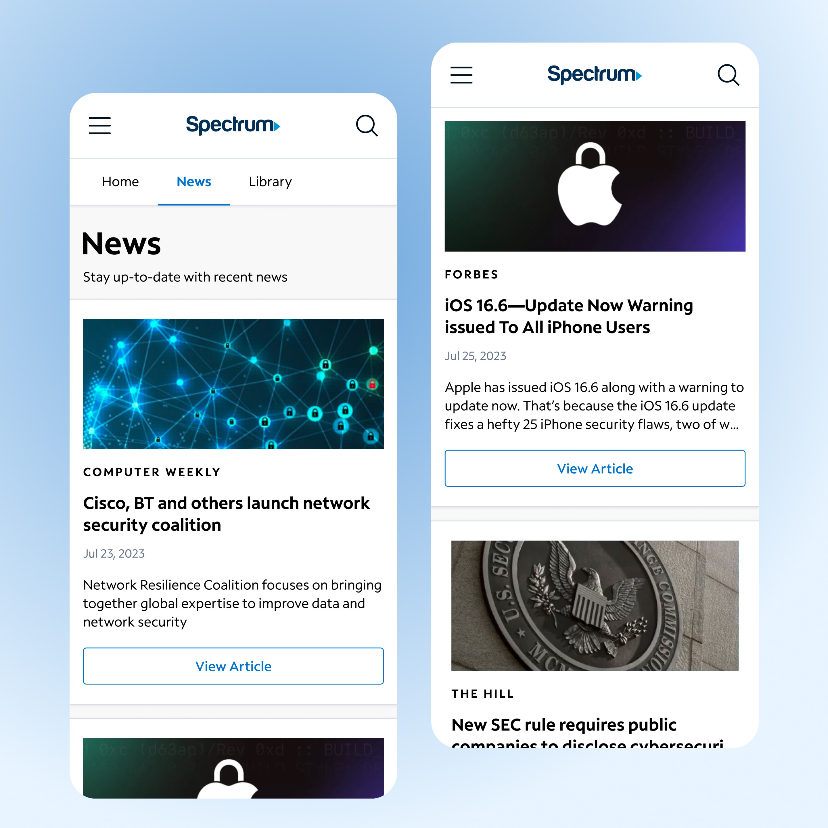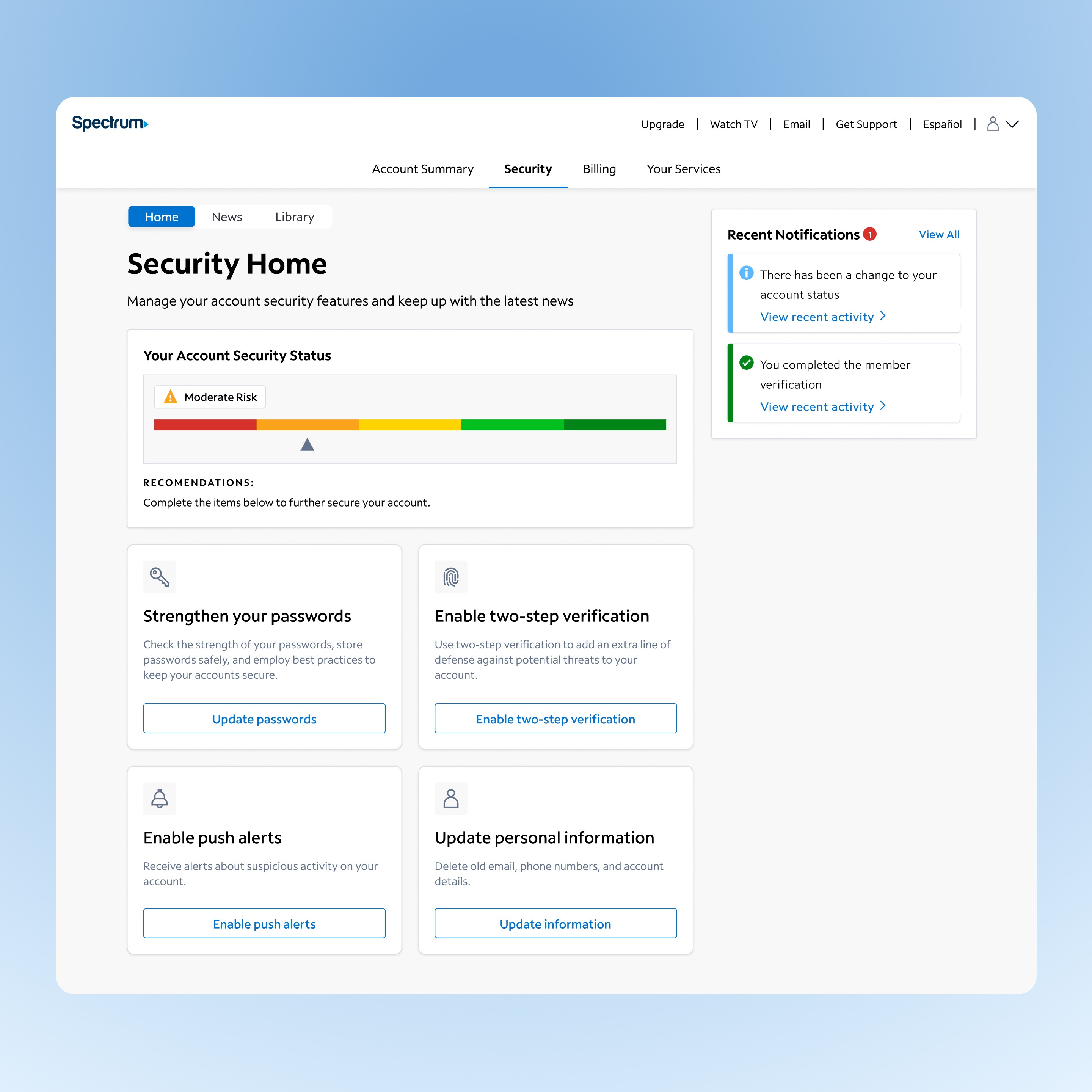 Security Portal - Spectrum Mobile App and Website